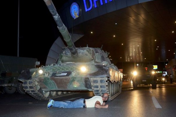 Тем временам, сотни сторонников Эрдогана в аэропорту Стамбула празднуют успех. Они считают, что мятеж успешно подавлен. Им удалось заблокировать военную технику
