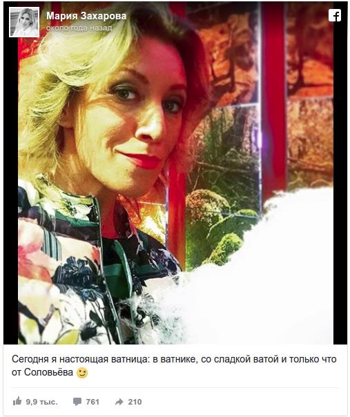 В 2015 году Мария Захарова заняла должность директора департамента информации и печати МИД России. Она, также как и Рогозин, часто комментирует украинские новости в резкой форме.